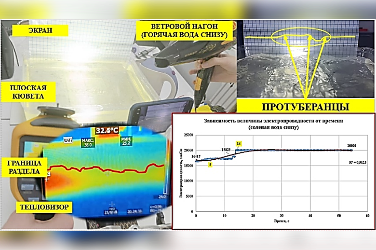 В работе представлены результаты комплексного исследования неустойчивости Кельвина-Гельмгольца, проведенного с использованием оригинальной экспериментальной установки. Исследование охватывает как однофазные воздушные системы, так и двухфазные жидкостные среды. Неустойчивость Кельвина – Гельмгольца возникает на границе между двумя воздушными потоками, движущимися с различными скоростями или в двухфазной среде, где верхняя жидкость считается менее плотной, чем нижняя; для обеих жидкостей учитывается действие вертикального поля силы тяжести, при этом поверхностным натяжением на границе раздела пренебрегается.
