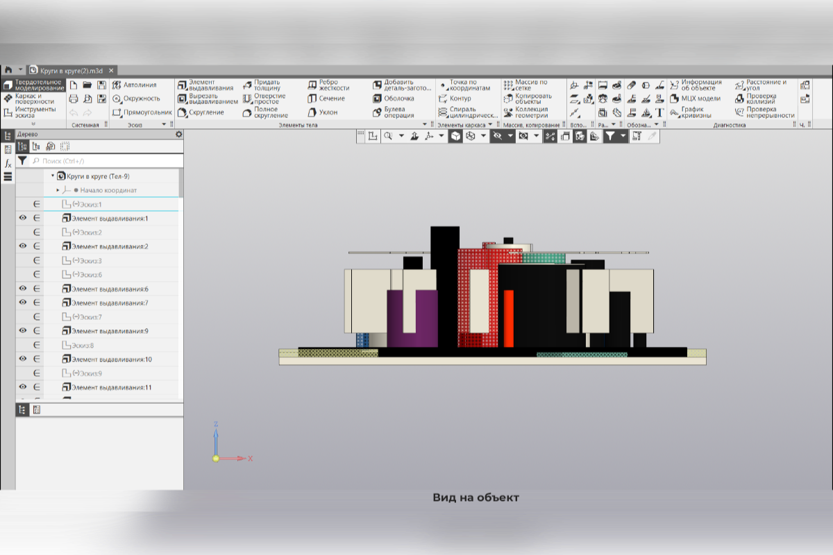 Данный проект посвящен разработке уникального арт-объекта, вдохновленного работами великого русского художника Василия Кандинского, выполненного с применением отечественного программного комплекса КОМПАС-3D. Основная цель состоит в создании высококачественной и реалистичной трехмерной модели, которая сможет успешно применяться как в инженерных разработках, так и в качестве самостоятельного художественного произведения.