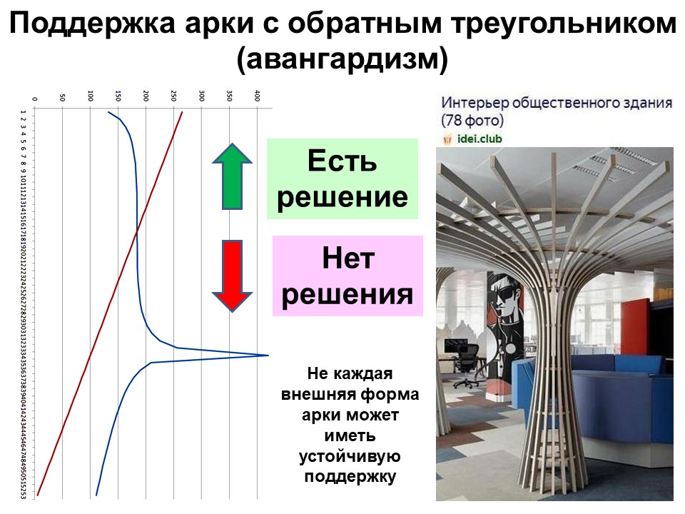 Строгое теоретическое решение в виде теоремы для поддерживающей линии удалось получить пока только для треугольной арки.