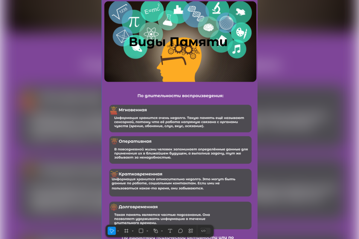 В проекте создан веб-сайт на тему «Хорошая ли у вас память». В своей работе я почувствовал себя веб-дизайнером (UX/UI) и frontend-разработчиком и могу с уверенностью сказать, что в будущем я хочу связать свою жизнь с веб-разработкой, так как это довольно интересный и можно сказать захватывающий опыт.